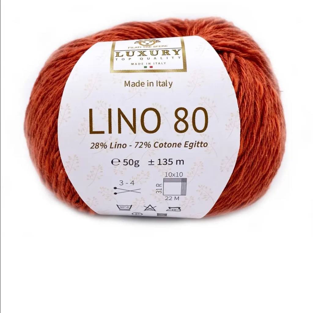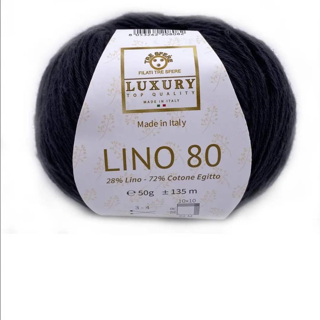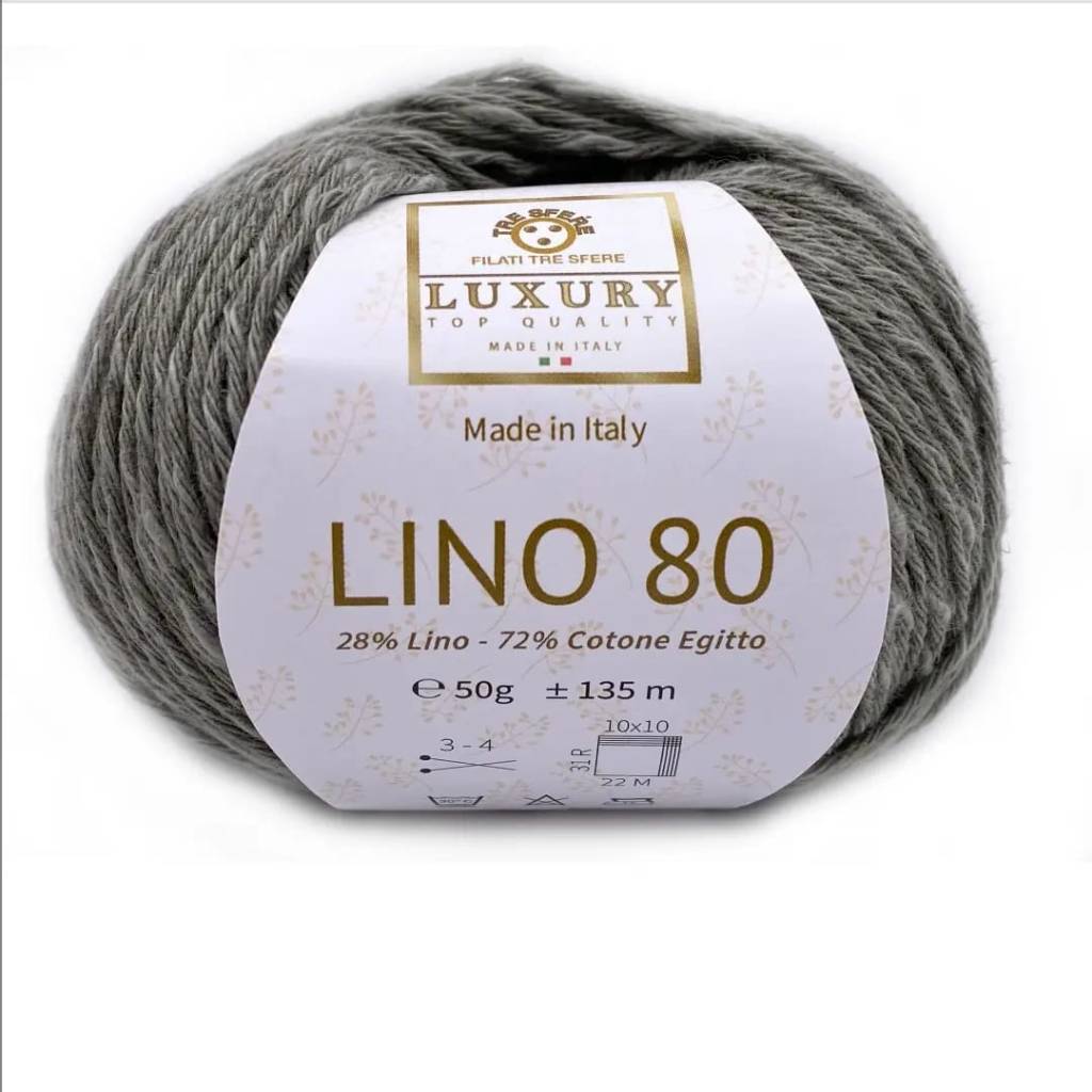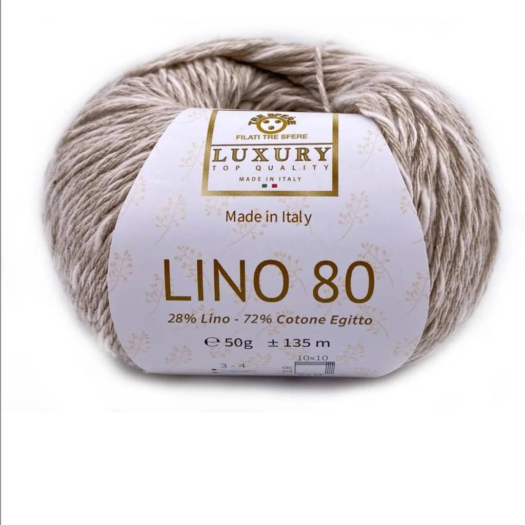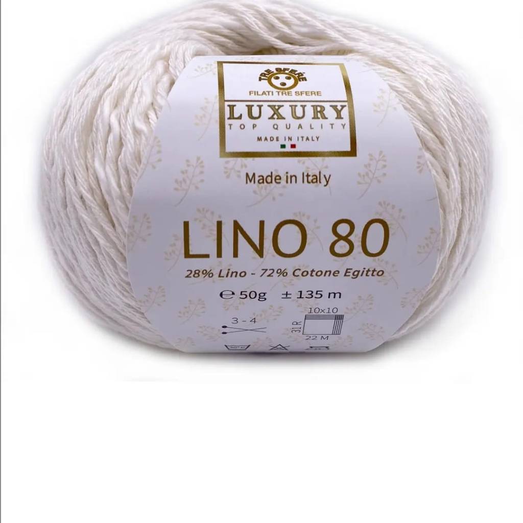 Linea Luxury, puro Cotone Egitto 72% Lino 28%, confezione da 4 gomitoli da 50 gr. 135 mt, Ferri 3 – 4, certificato oekotex, produzione artigianale italiana.